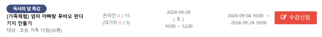 - 모집기간: 9월 4일(수) 10:00~선착순