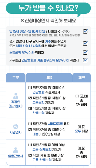 - 경기 안양시,대구 달서구 거주자 또는 해당 지역 내 사업장에서 일하는 근로자