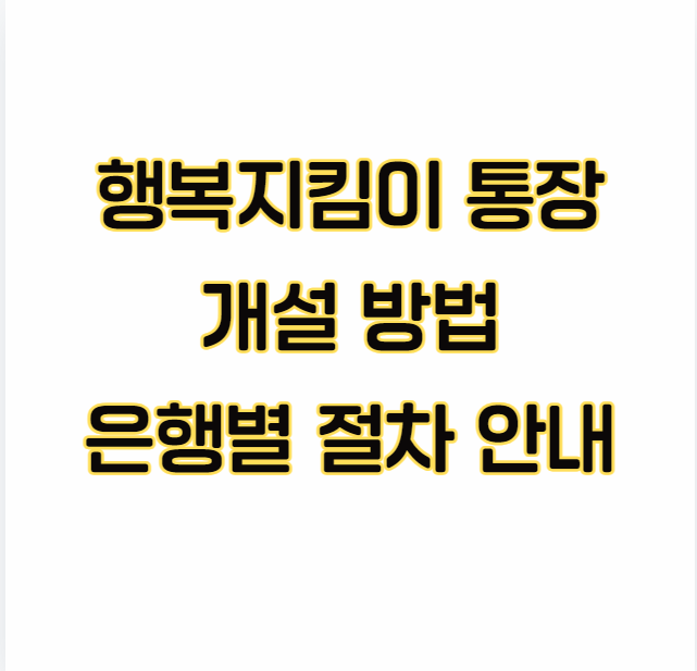 - 통장의 명칭: 각 은행마다 행복 지킴이 통장의 명칭이 조금씩 다를 수 있습니다.