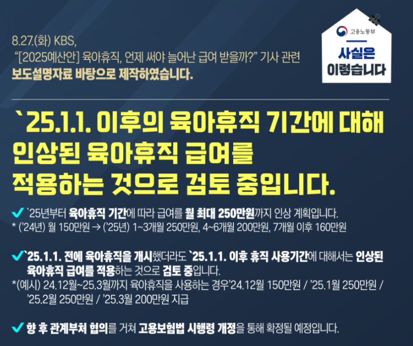 - 2025년 1월 1일 이후에 휴직을 시작해야 인상된 급여 적용
